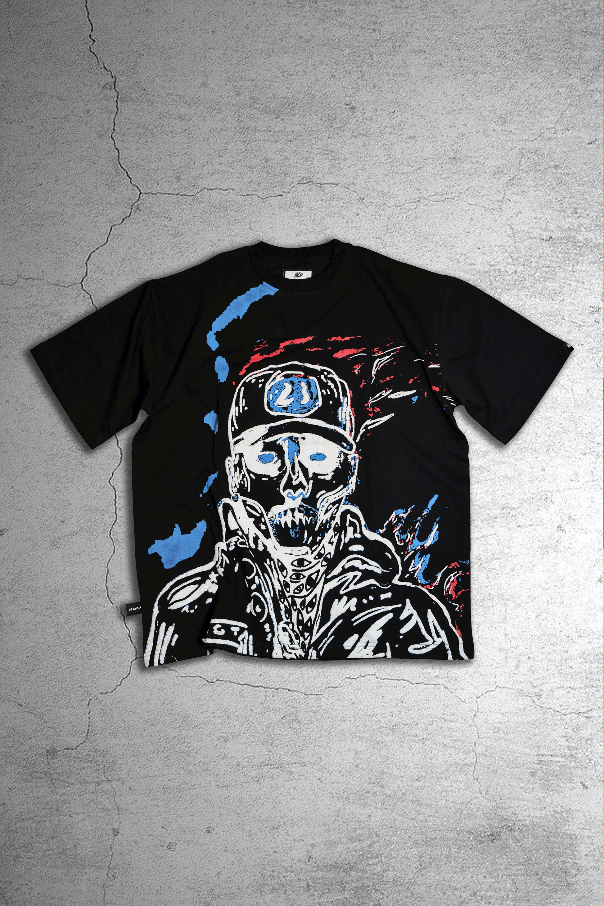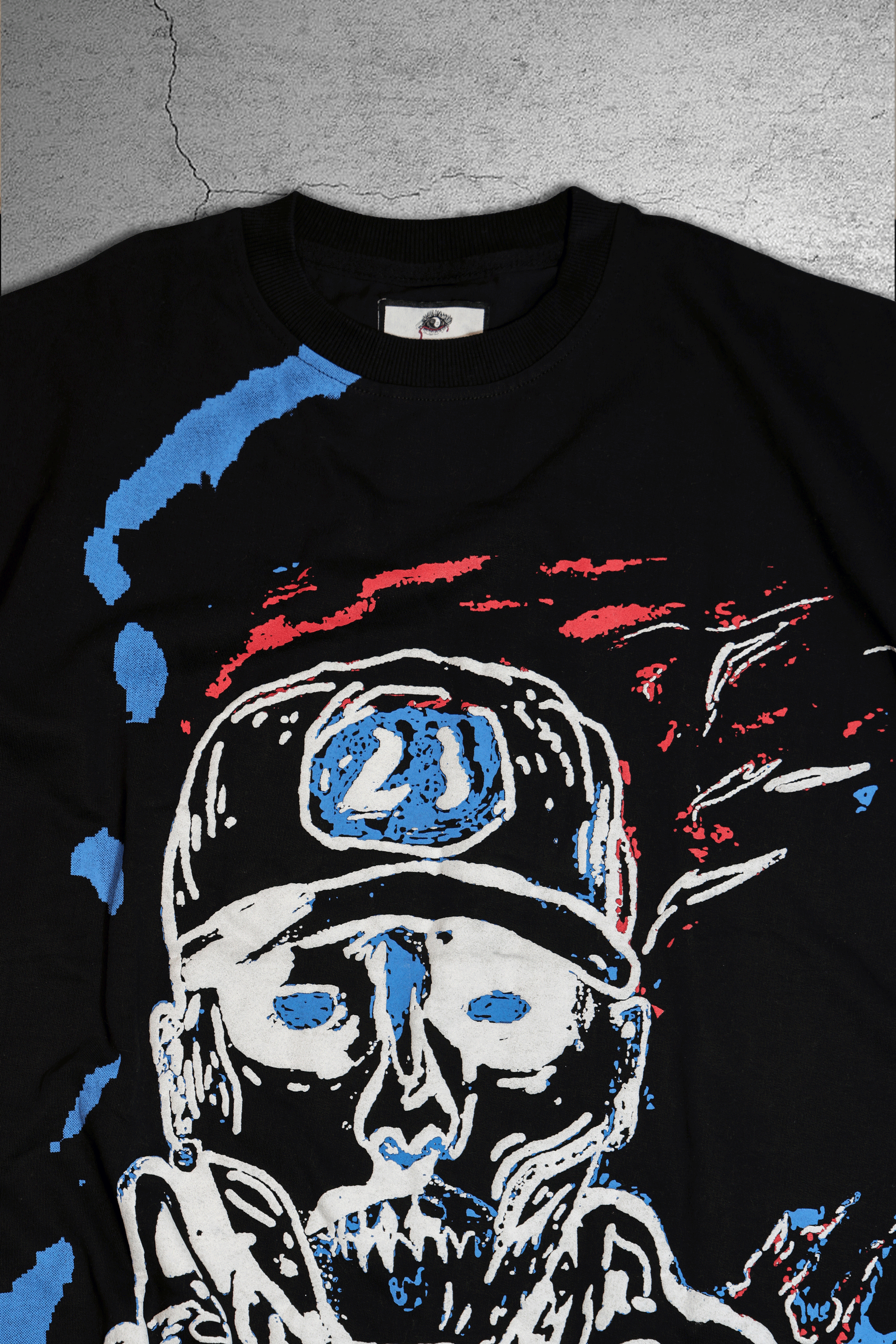 DHUNDALA T-SHIRT HAS AN OVERSIZED FIT, CRAFTED FROM A HEAVY WEIGHT COTTON TERRY. SUPER SOFT WITH RIBBED NECK. FEATURING AN ABSTRACT FACE PRINT OF TALWIINDER ON THE FRONT.