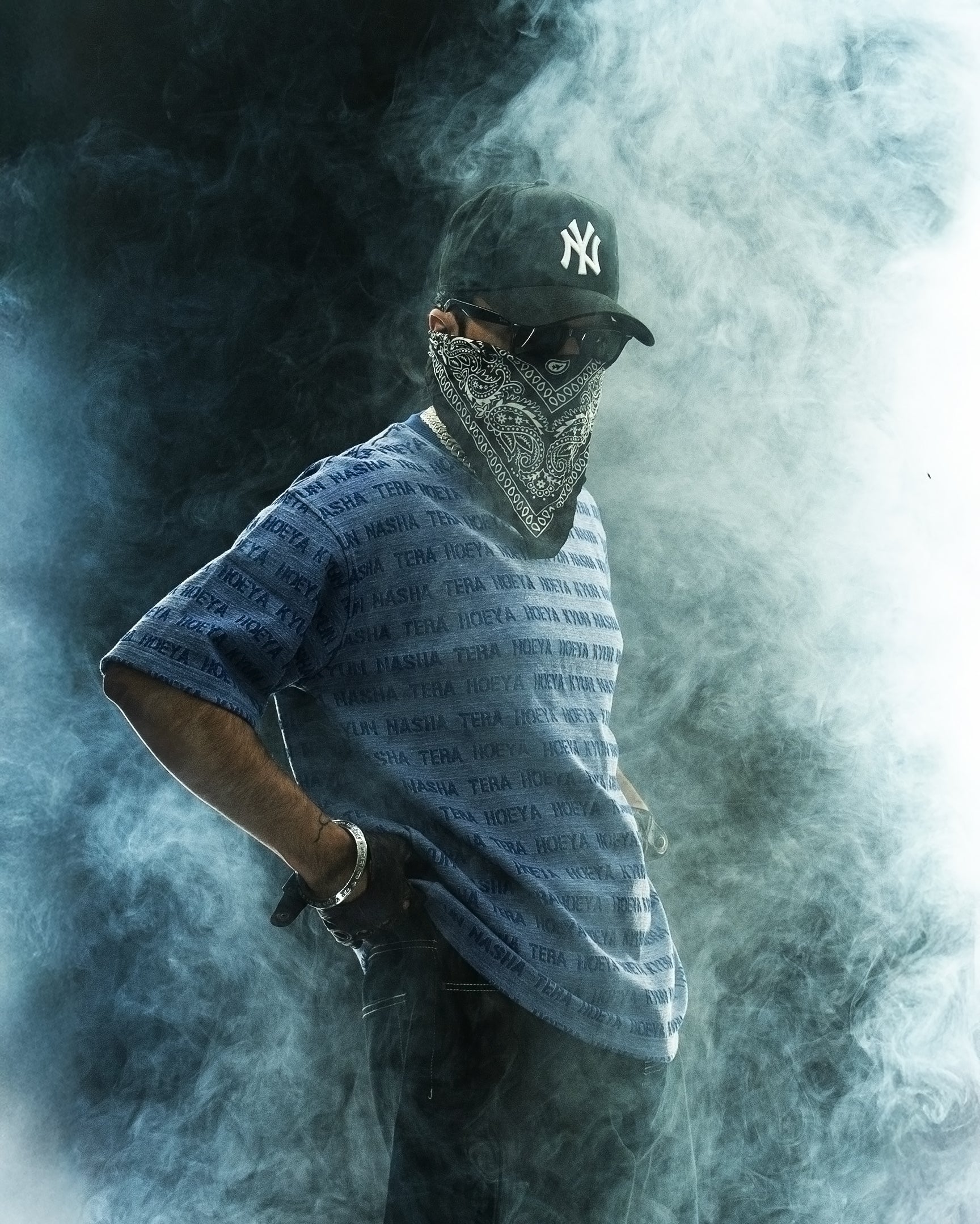 NASHA T-SHIRT HAS AN OVERSIZED FIT, CRAFTED FROM A HEAVY WEIGHT QUILTED JACQUARD. SUPER SOFT WITH RIBBED CREWNECK. EMBOSSED "KYUN NASHA TERA HOEYA" ALL OVER, CRAFTED WITH A BLEND OF COTTON AND POLYESTER.